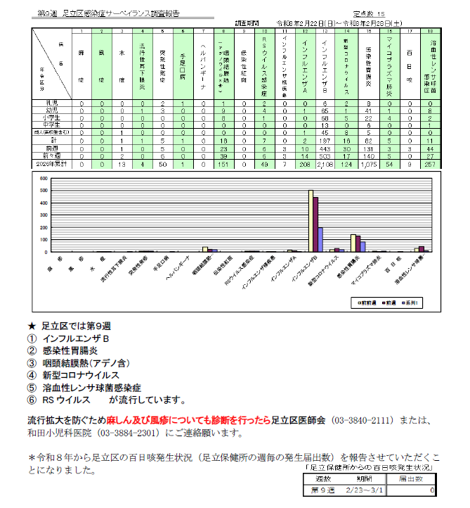 足立区感染症サーベイランス 足立区感染症情報 感染症情報 保険情報